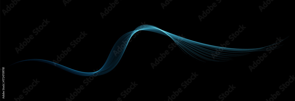Fototapeta na wymiar - Vector abstract brush stroke wavy lines flowing smooth curve blue green light gradient isolated on black background in concept of technology, science, music, modern..