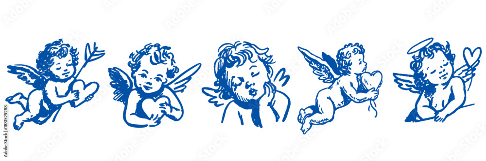 Fototapeta na wymiar - Hand drawn cute cupid cherub illustrations for valentine designs.