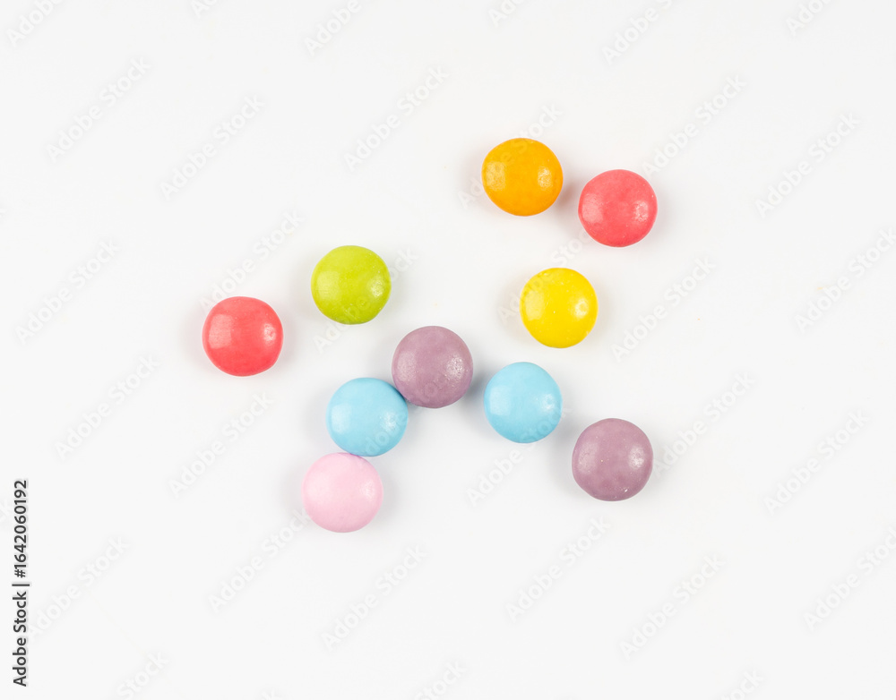 Fototapeta na wymiar - Scattered small candies isolated. Colorful dragees, multicolored glazed chocolate buttons.