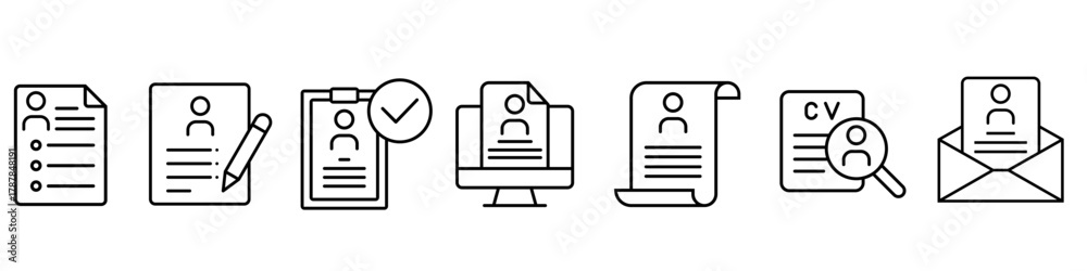 Fototapeta na wymiar - CV icon vector set. Resume illustration sign collection. user data symbol or logo..