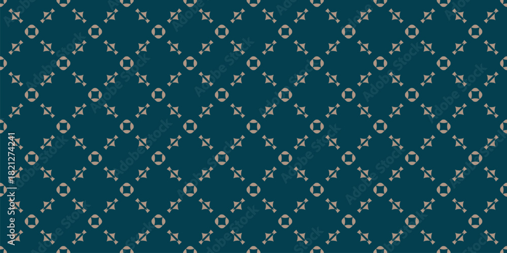 >Fototapety na wymiar>Wybrane motywy - zobacz więcej !>Spa & Beauty>Vector ornamental seamless pattern. Elegant geometric background, texture with lattice, floral shapes, grid. Dark teal green and beige color. Repeating design for print, decor, wallpaper, textile