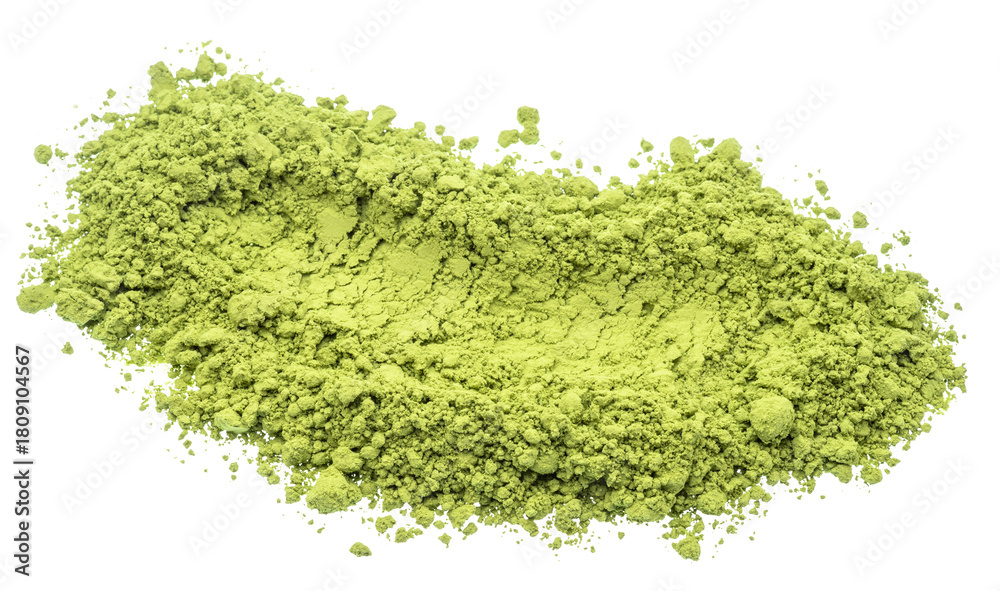 Fototapeta na wymiar - Matcha tea, finely ground powder of green tea on white background. File contains clipping path..