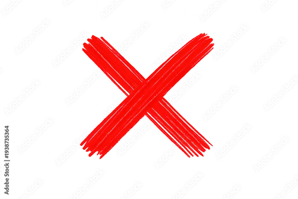 Fototapeta na wymiar - Red x mark drawing, symbolizing denial, cancellation, error, stop, forbidden, and wrong sign on transparent background.