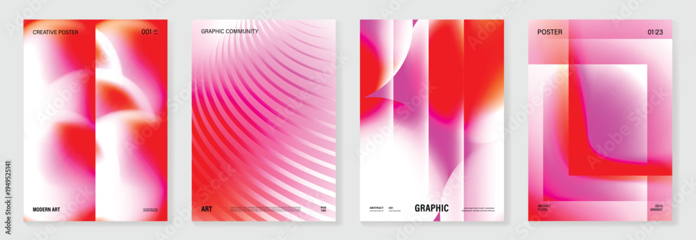 Fototapeta na wymiar - Minimal pink gradient poster vector set. Soft blur waves and flowing lines on white background for cover, banner, beauty branding, and modern design..