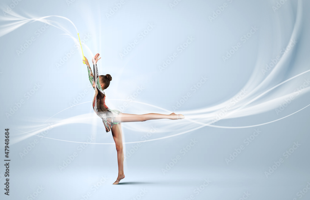 Naklejka na ściany i meble - Młoda kobieta w garnitur gimnastyczka stwarzających.