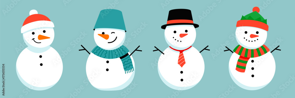 Naklejka na ściany i meble - Snowman vector. Snow man vector cartoon.