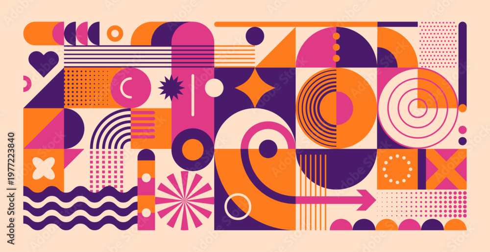 Naklejka na ściany i meble - Colorful abstract geometric pattern with bold shapes, retro style, and dynamic composition. Vector illustration..