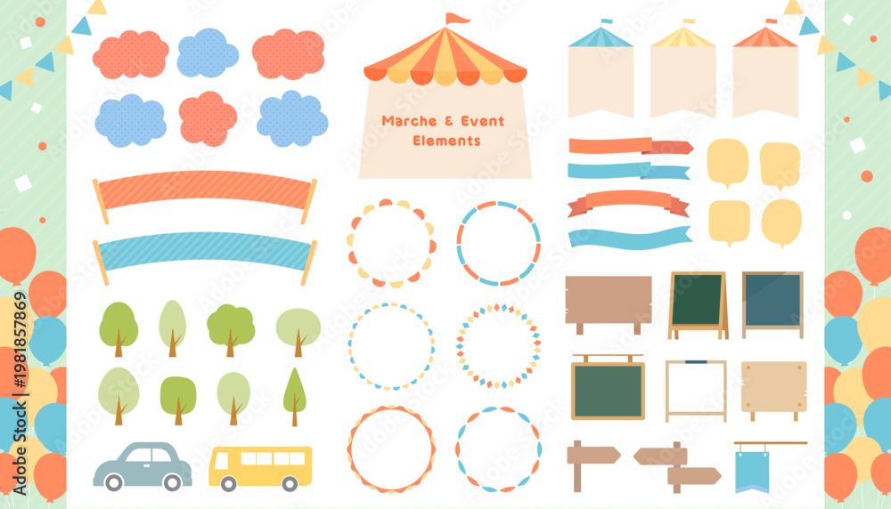 Naklejka na ściany i meble - マルシェやフリーマーケットに使えるポップなイベント装飾セット.