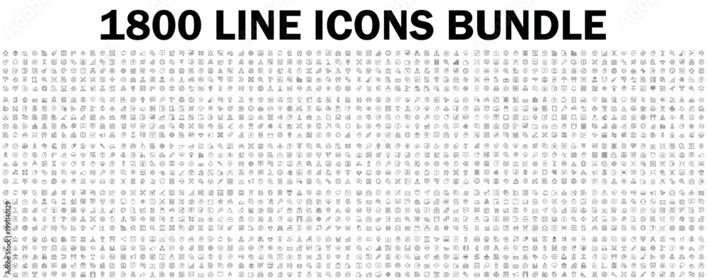 Naklejka na ściany i meble - Mega set of vector thin line icons. Editable stroke. Contains such icon collection as social media, business, teamwork, commerce, security, office workspace, customer service. Linear pictogram pack..