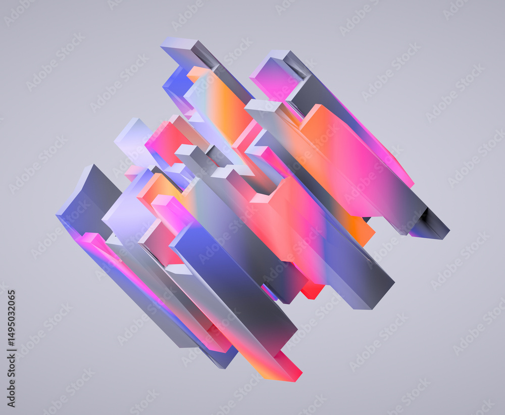 Naklejka na ściany i meble - abstract multicolored dynamic shape isolated on neutral background, modern geometric wallpaper, 3d render.