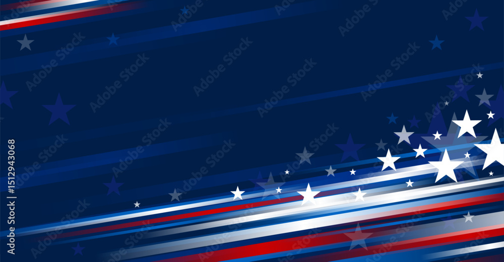 Naklejka na ściany i meble - 4th of july USA independence day banner design of stars and line on blue background with copy space vector illustration.