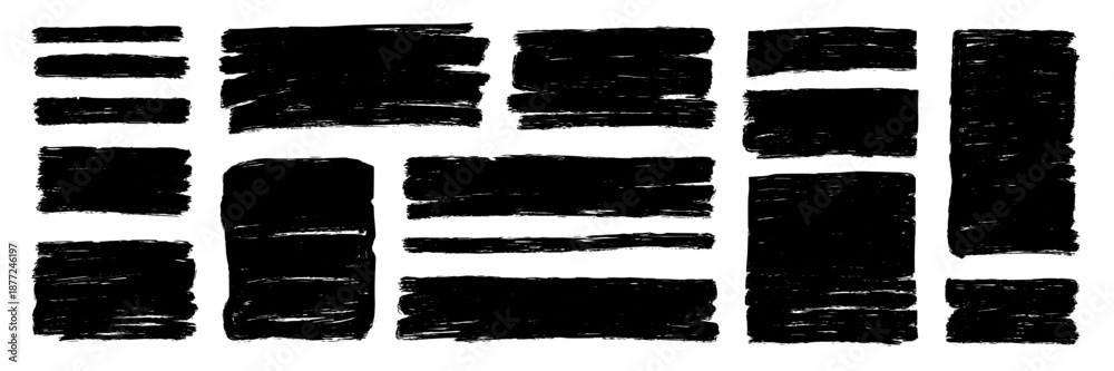 Naklejka na ściany i meble - Rough brush square, rectangle frame with torn edges and jagged borders. Square and rectangle shapes for text boxes, vintage paper texture with rough brush black ink strokes. Vector illustration.