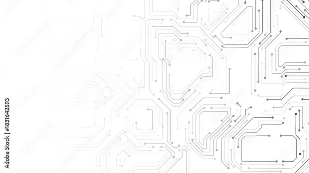 Naklejka na ściany i meble - White Circuit Board Background with Modern Tech Chip Line Pattern, Ideal for Technology, Semiconductor, and Digital Themes. Vector Illustration..