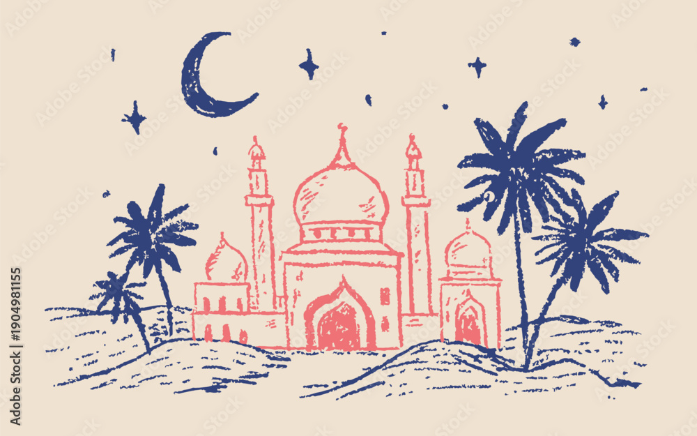 Naklejka na ściany i meble - Hand drawn style doodle of an islamic mosque for ramadan kareem and eid celebration.