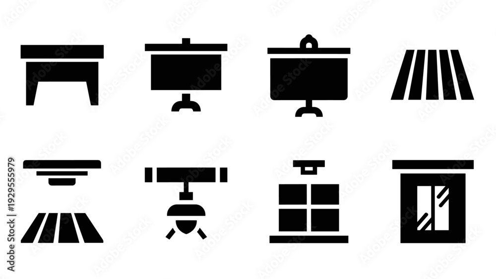 Naklejka na ściany i meble - set of modern black silhouette ceiling and wall light icons for interior design.