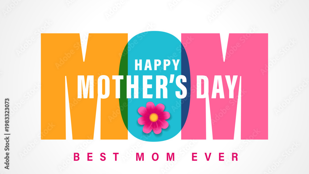 Naklejka na ściany i meble - MOM, Happy Mothers Day greeting card with colorful lettering. The inscription Best Mom ever ​​and decoration of chamomile flower for Mother's Day banner or poster design. Vector illustration.