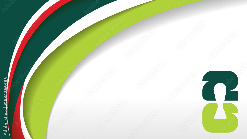 Naklejka na ściany i meble - Mexican national flag ribbon background for 2026 football tournament. Green red and white wavy ribbons with trophy silhouette for soccer world championship in mexico..