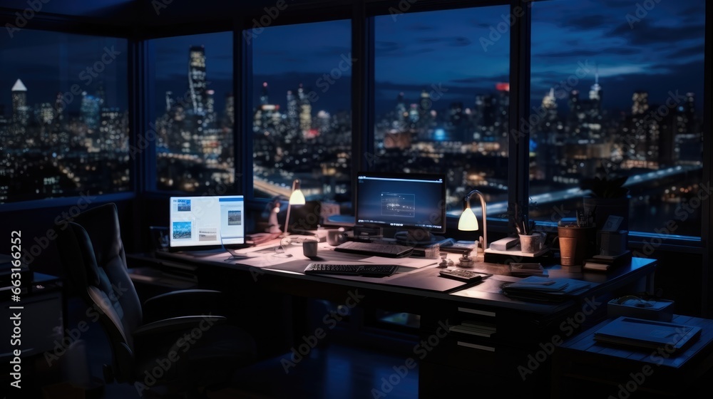 Naklejka na ściany i meble - Nighttime workplace illuminated..