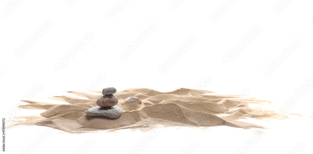 Naklejka na ściany i meble - Pile desert sand dune and spa rock isolated on white background, clipping path.