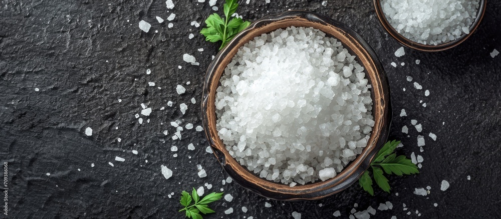 Naklejka na ściany i meble - Top view of bowl with sea salt..