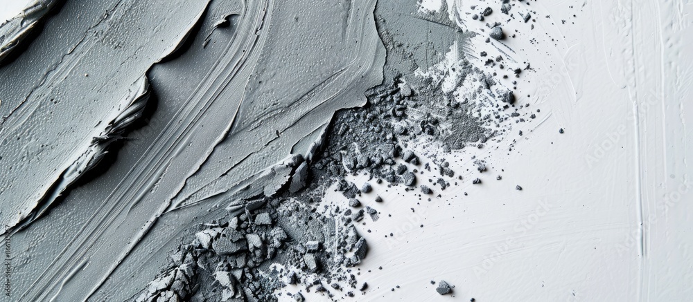 Naklejka na ściany i meble - Top view of a gray cosmetic smudge on a white backdrop with a stroke of clay, providing ample copy space in the image..