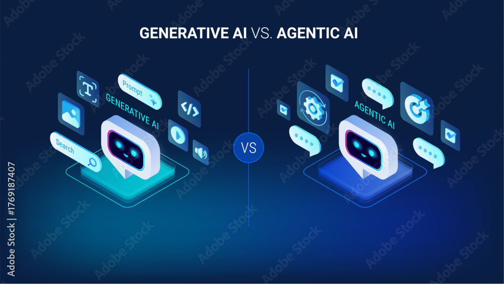 Naklejka na ściany i meble - Generative AI and Agentic AI comparison - isometric modern vector illustration.
