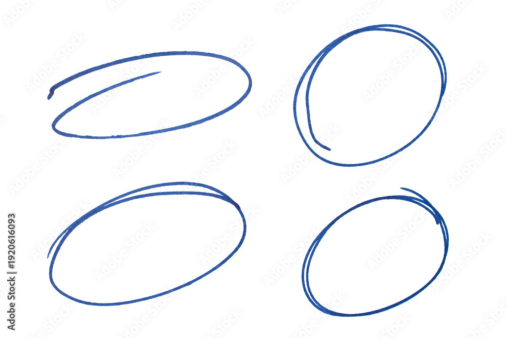 Naklejka na ściany i meble - Set of blue highlight circles on transparent background cut out design elements.