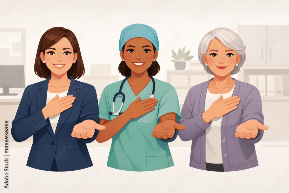 Naklejka na ściany i meble - International Womens Day Give to Gain Campaign 2026, 8 march theme, support IWD with diverse women in professional attire.