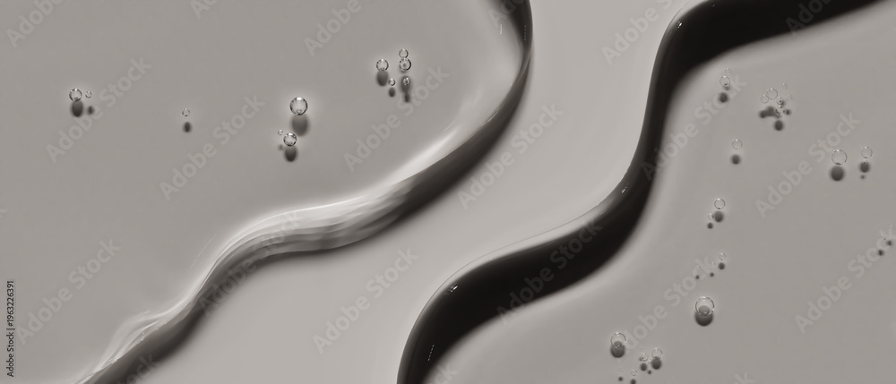 Naklejka na ściany i meble - Double overlapping dark grey transparent liquid strokes flat lay on neutral surface. Conveys deep purifying charcoal cleansing concept excellent for men skincare advertising or detox face mask..