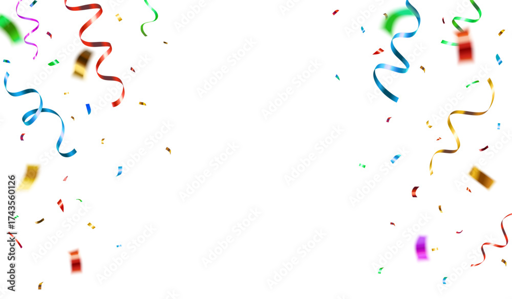 Naklejka na ściany i meble - Decorative vector illustration border with falling shiny colorful confetti on the sides isolated on white background .