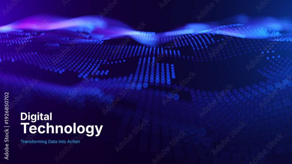 Naklejka na ściany i meble - Big Data Technology Flow Background with Neural Network Particles and Digital Stream Lines. Futuristic Data Science Concept. Tech Business Presentation or Annual Report Template. Vector Illustration..
