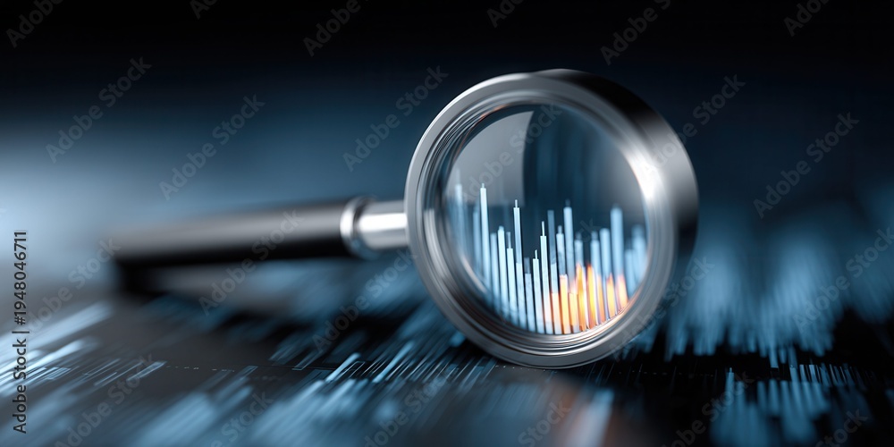 Naklejka na ściany i meble - Magnifying glass over financial stock market data charts and graphs.