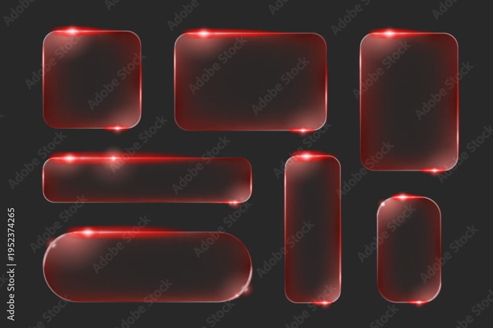 >Naklejki na ściany i meble>Wybrane motywy - zobacz więcej !>Konie>Glass frames set with neon red light effects isolated on black background. Vector realistic illustration of glowing rounded borders, futuristic digital interface elements, gaming screens
