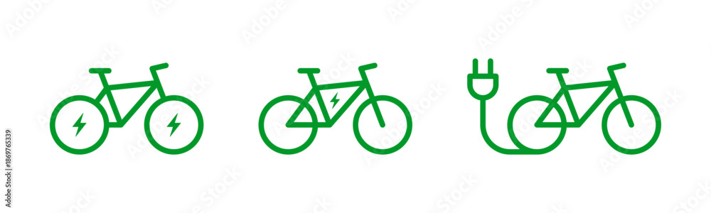 Naklejka na ściany i meble - Green electric bicycle icon set.