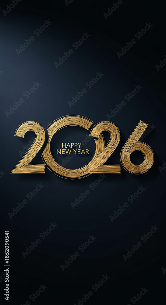 Naklejka na ściany i meble - Golden numbers 2026 on a dark blue backdrop, representing the year and greeting for Happy New Year, symbolizing celebration and new beginnings.