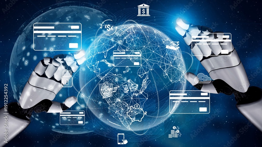 Naklejka na ściany i meble - AI facilitates real-time digital payment systems, connecting global financial services with security, speed, and smarter transaction experiences across mobile and cloud platforms Marrow.