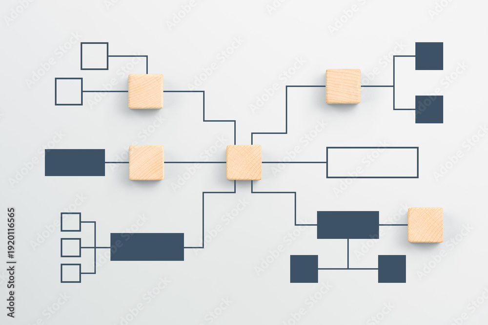 Naklejka na ściany i meble - Business process, Workflow, Flowchart, Process Concept with wooden cubes on white background.