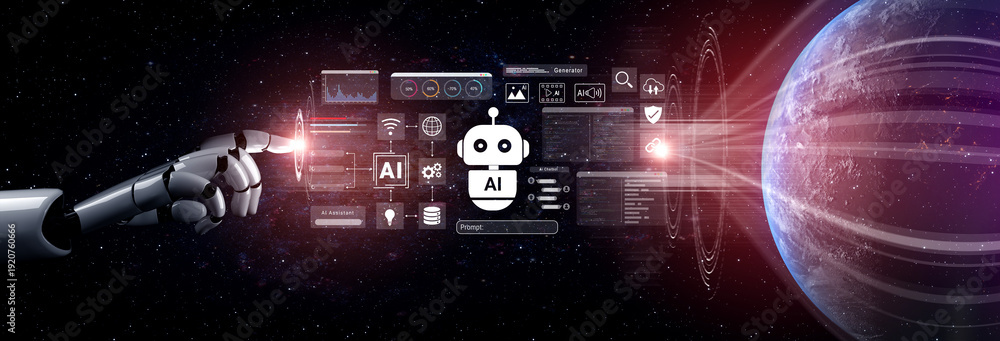 Naklejka na ściany i meble - Artificial intelligence enhances chatbot assistant, automation, and data analysis to improve conversation and customer service Parse.