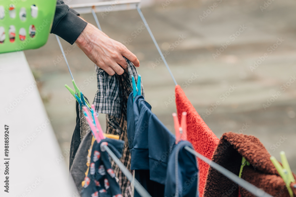 Naklejka na ściany i meble - close-up of hands hanging out the laundry.