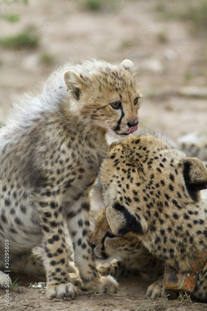 Naklejka na ściany i meble - Cheetah cub and mother.
