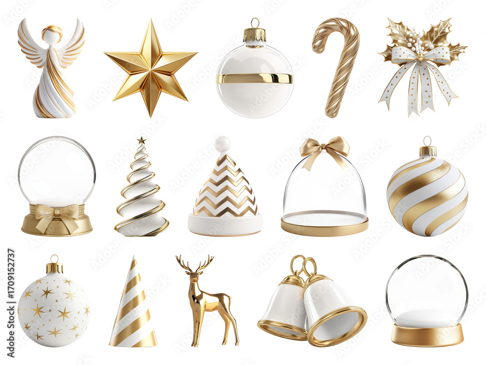 Naklejka na ściany i meble - PNG Elegant gold white Christmas ornaments, element set on transparent background.