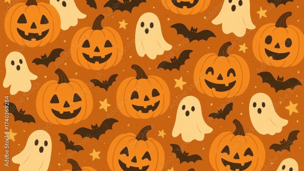 Naklejka na ściany i meble - Playful Halloween pattern illustration.