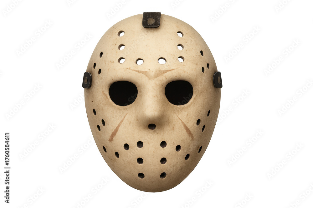 Naklejka na ściany i meble - Character hockey mask representing horror, slasher movies, halloween costume, fear, and terrifying concepts on transparent background.