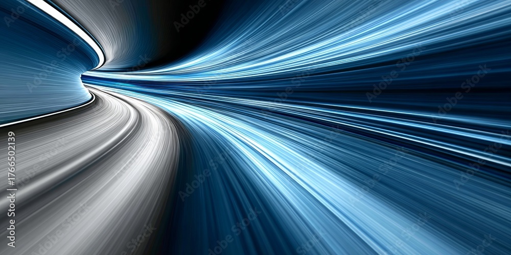 Naklejka na ściany i meble - Futuristic Highway with Blue Light Trails Representing Fast Internet Speeds and Data Transmission.