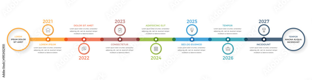 Naklejka na ściany i meble - Timeline infographic template with seven milestones.