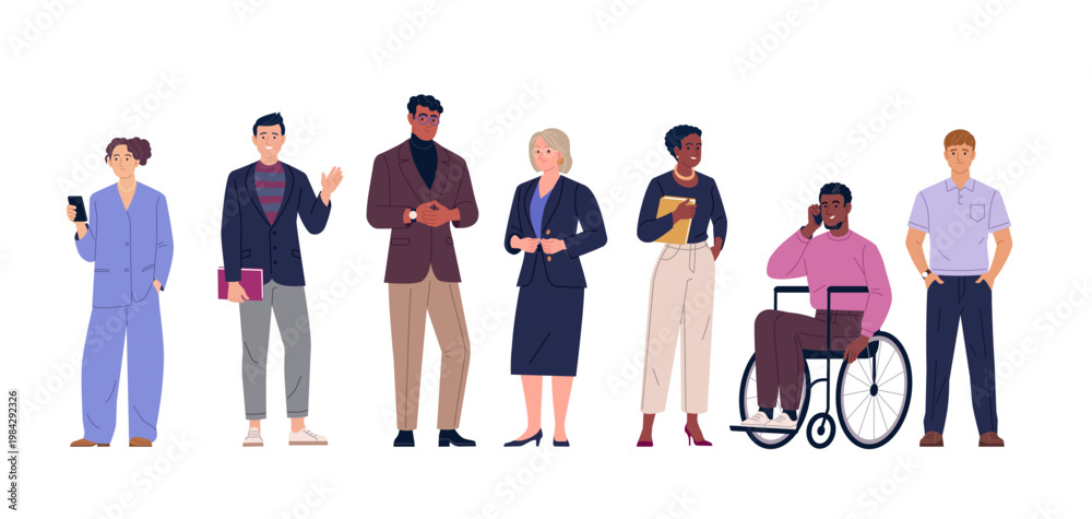 Naklejka na ściany i meble - Business Team Collection. Vector cartoon illustration of a group of diverse people in business outfits standing together. Isolated on a transparent background..