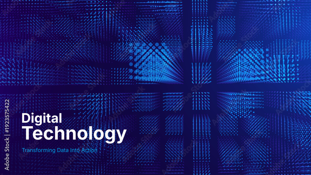 Naklejka na ściany i meble - Digital Transformation Background With Neon Skyscrapers and Integrated Data Networks. Abstract Next Generation Smart City With AI Data Streams and Futuristic Blue Infrastructure. Vector Illustration..