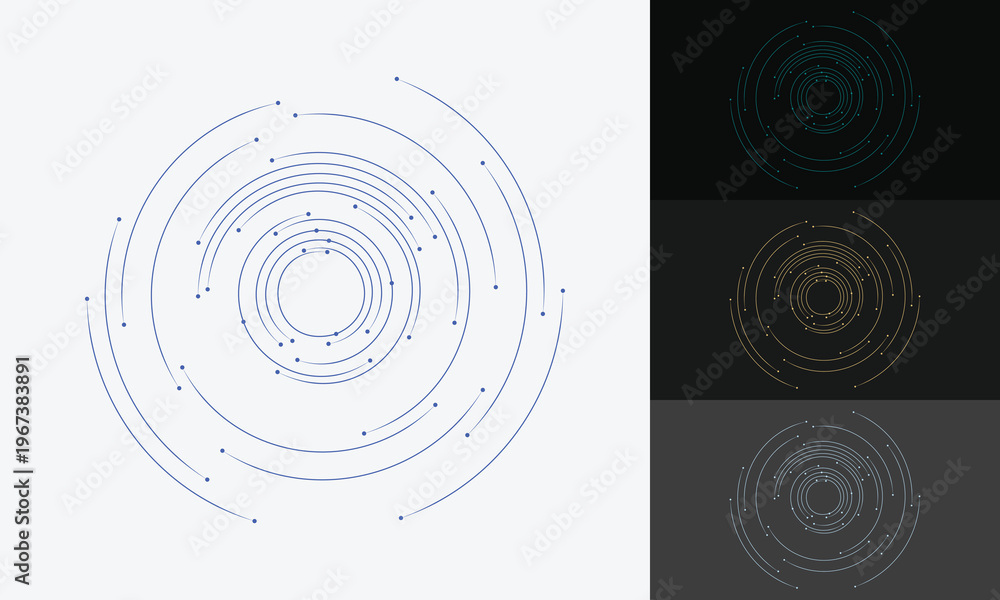 >Naklejki na ściany i meble>Wybrane motywy - zobacz więcej !>Maki>Abstract circular technology background with dashed lines and dots representing digital network connection. Vector illustration of HUD interface element or planetary orbits in minimalist style.