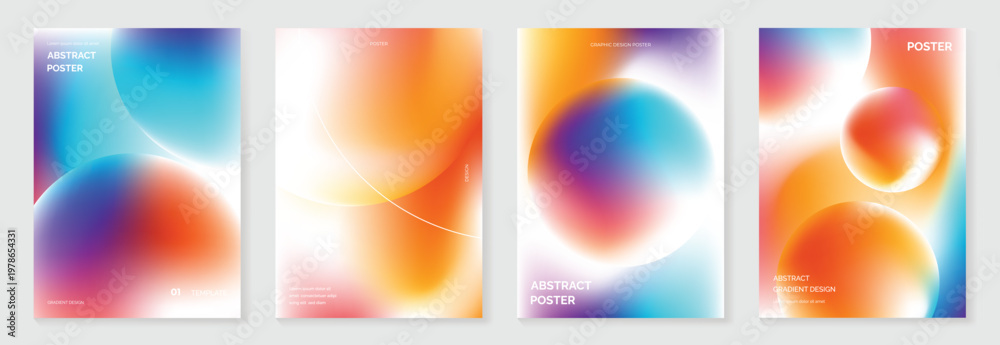 Naklejka na ściany i meble - Abstract gradient poster background vector set. Minimalist style cover template with vibrant perspective 3d geometric prism shapes collection. Ideal design for social media, cover, banner, flyer..