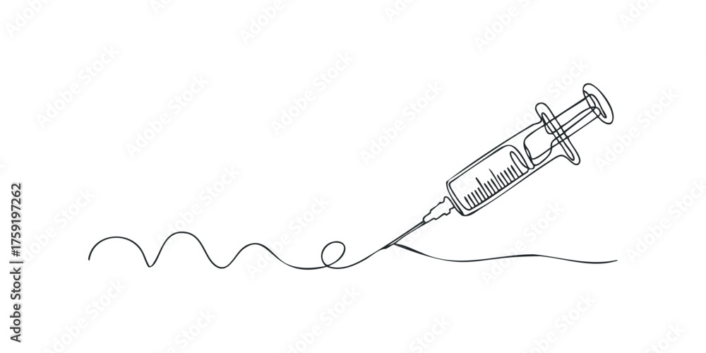 Naklejka na ściany i meble - Minimalist medical syringe on white.